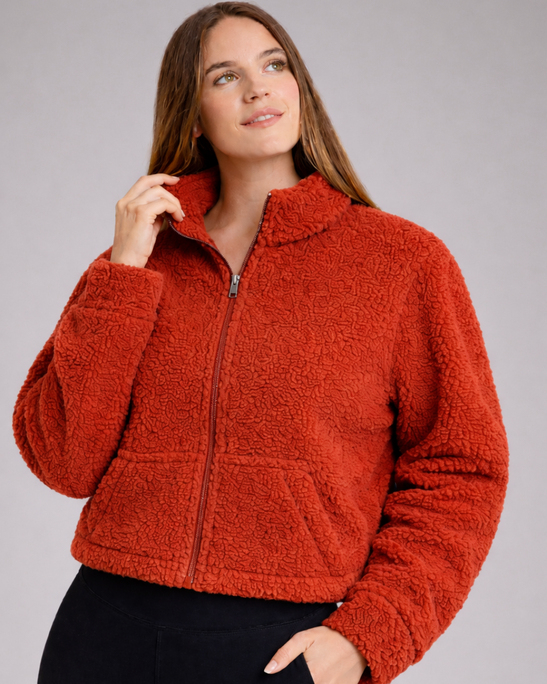 Por dentro, su interior ultra suave crea una sensación acolchonada y cómoda, perfecta para días frescos o para llevar como capa ligera. Es cálida sin ser calurosa, ligera sin perder estilo, y tan cómoda que no vas a querer quitártela.