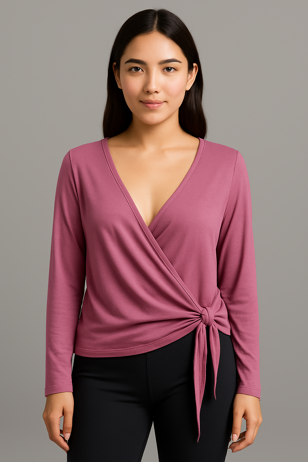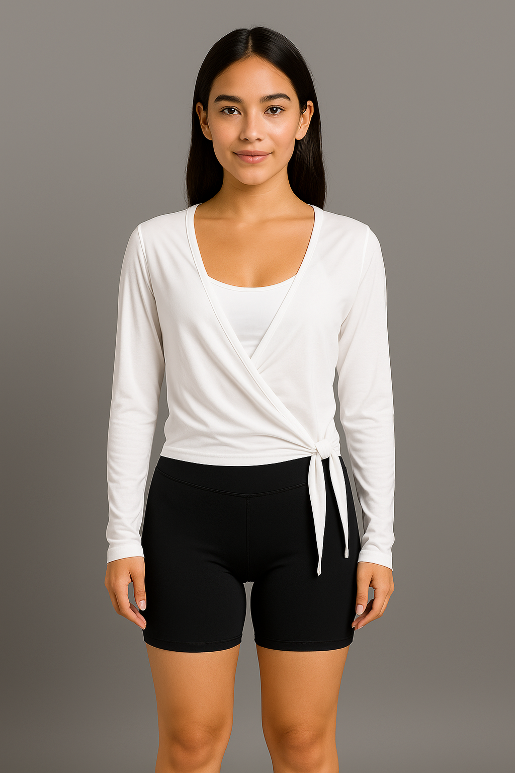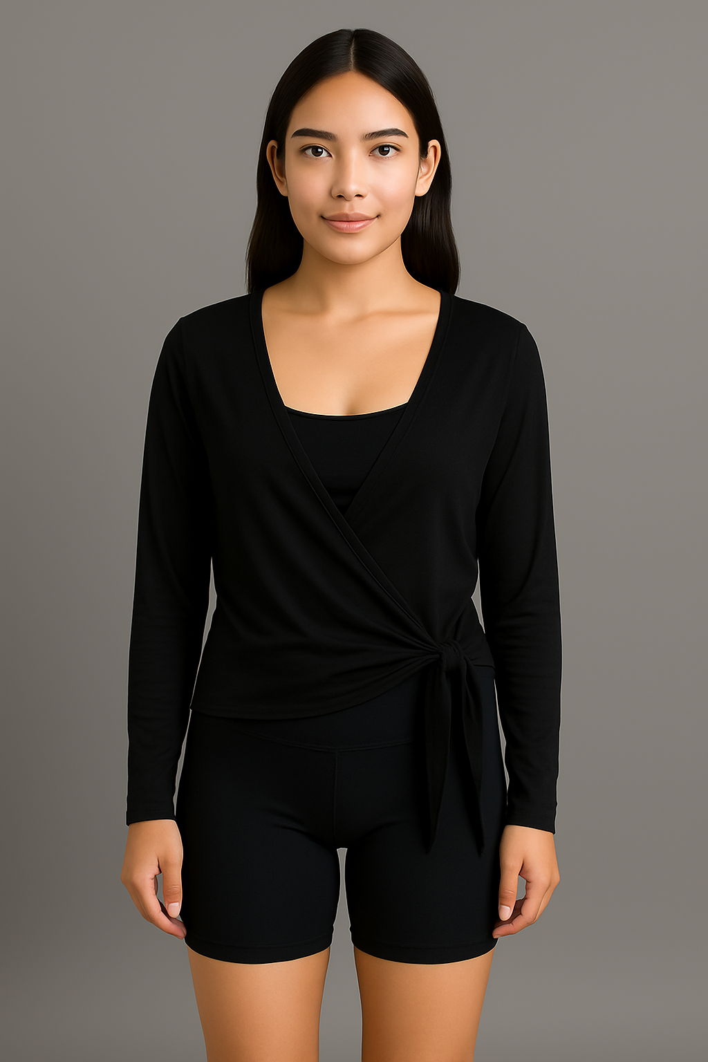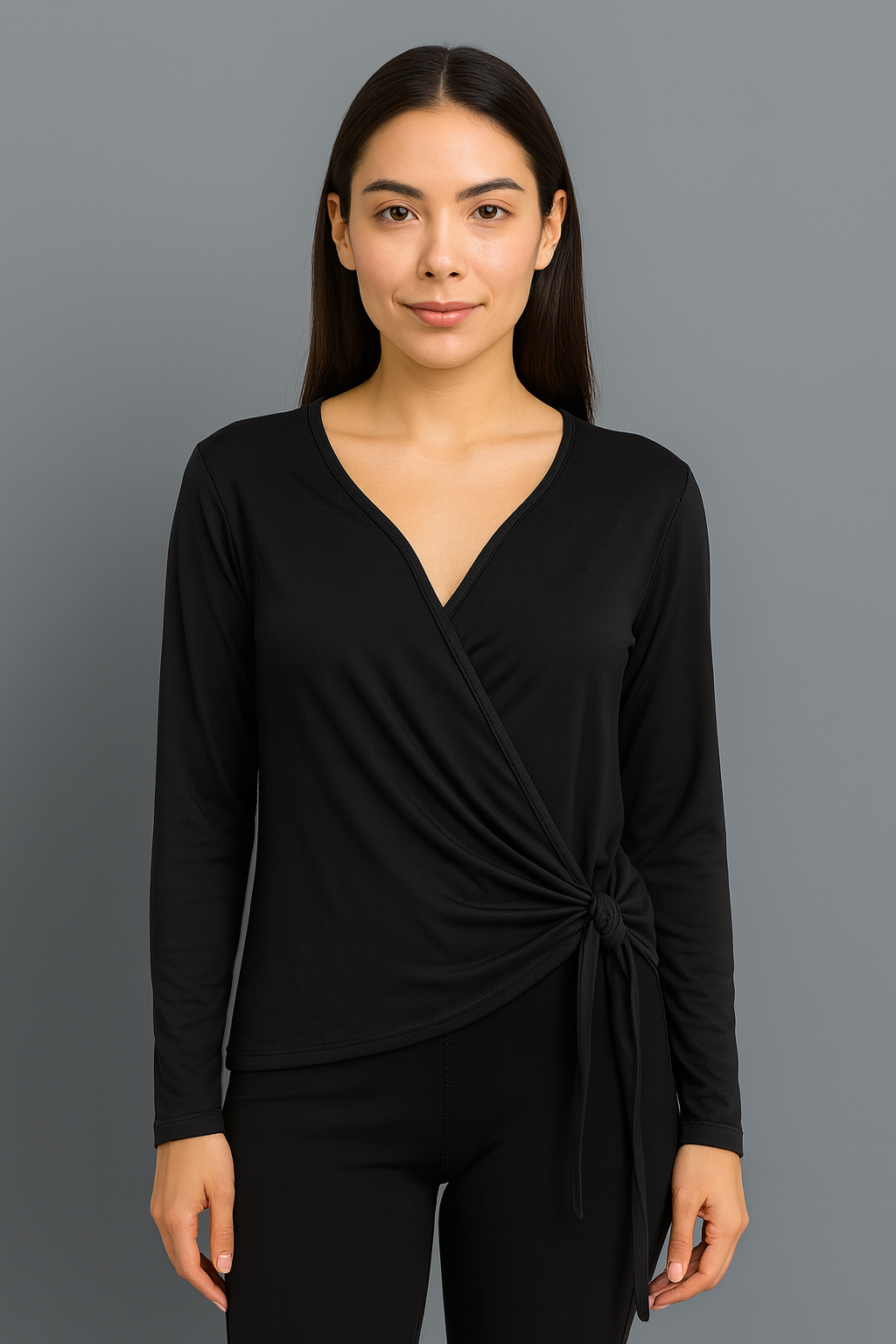 La Playera Deportiva con Lazo es ese toque chic y cómodo que tu clóset necesitaba. Su diseño tipo wrap con escote en “V” y lazo lateral crea una silueta favorecedora que se ajusta suavemente a tu cuerpo, dando un look femenino y moderno sin perder comodidad.