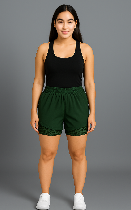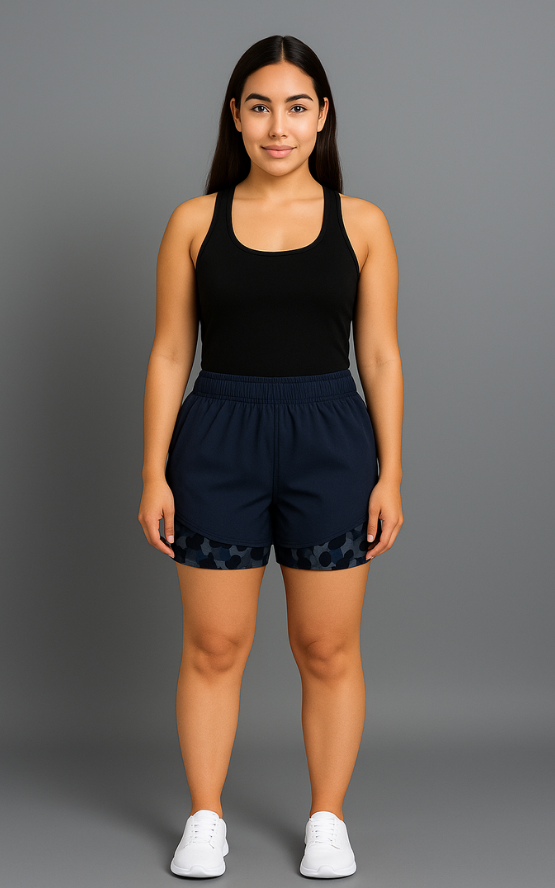 Short deportivo para dama con fondo estampado. Ideal para ejercitarte, mantenerte cómoda y fresca durante tus sesiones deportivas.